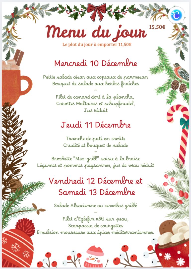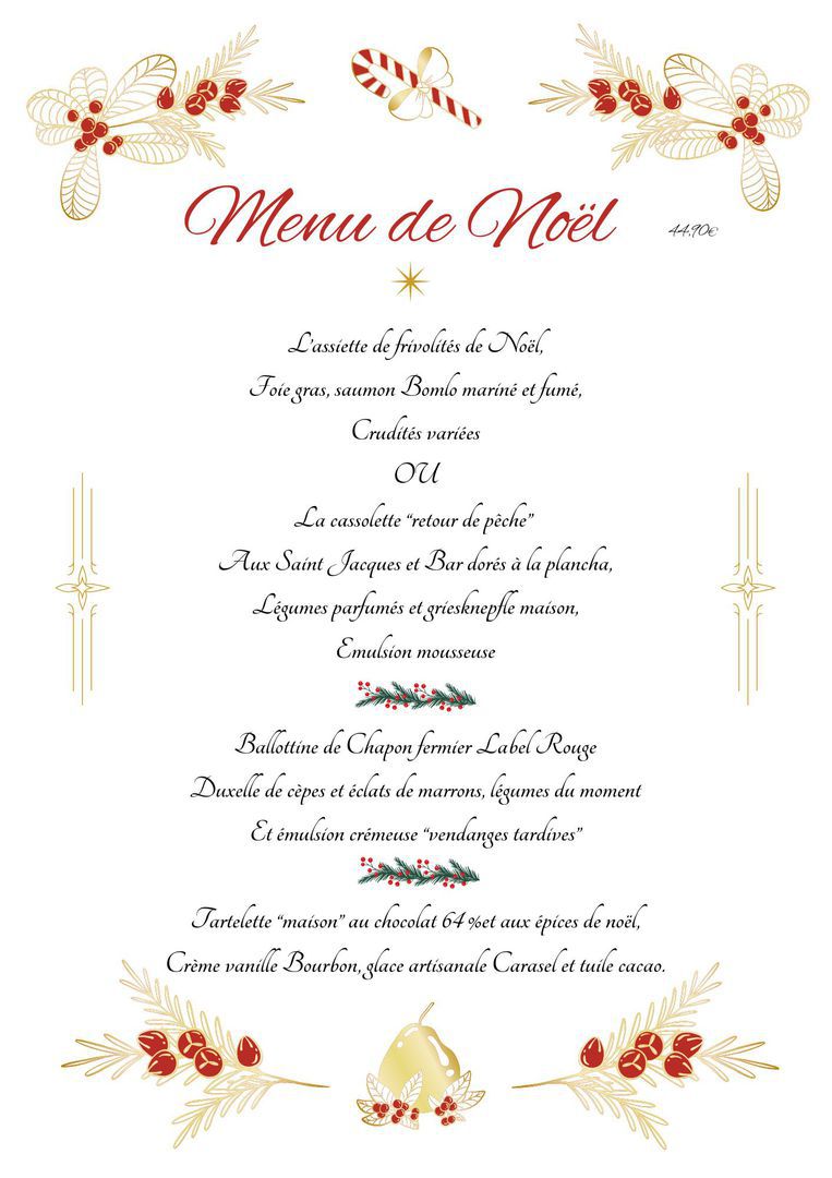 Nous vous proposons jusqu'au 21 Décembre notre Menu pour vos repas de fêtes. Le menu est diponible UNIQUEMENT sur commande.