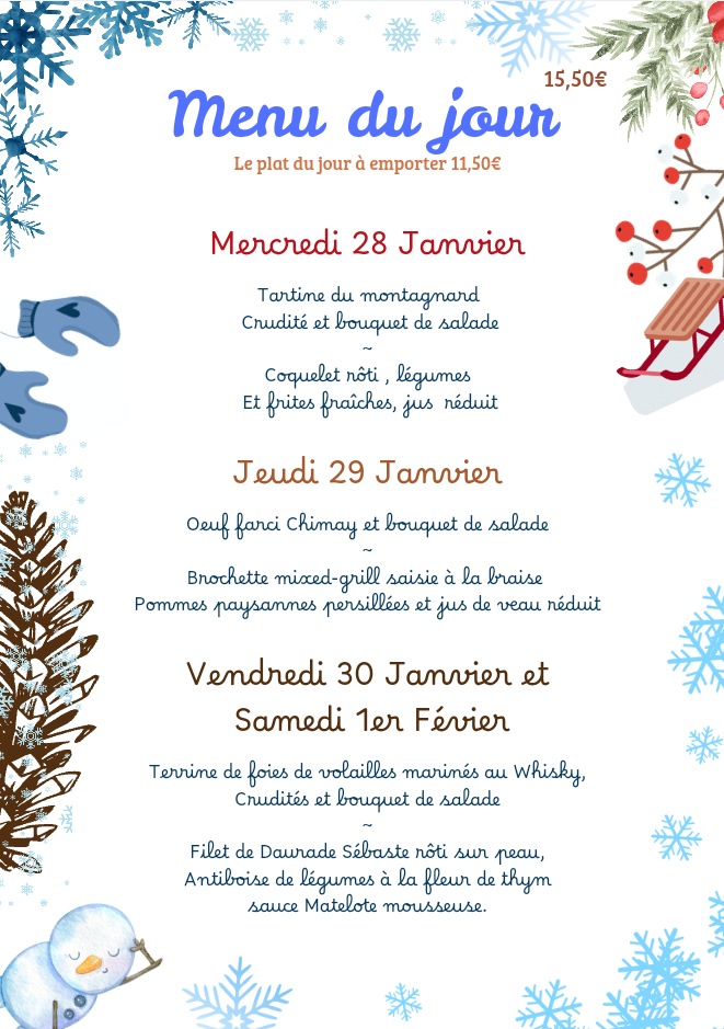 Le menu doit être le même pour l’ensemble de la table)